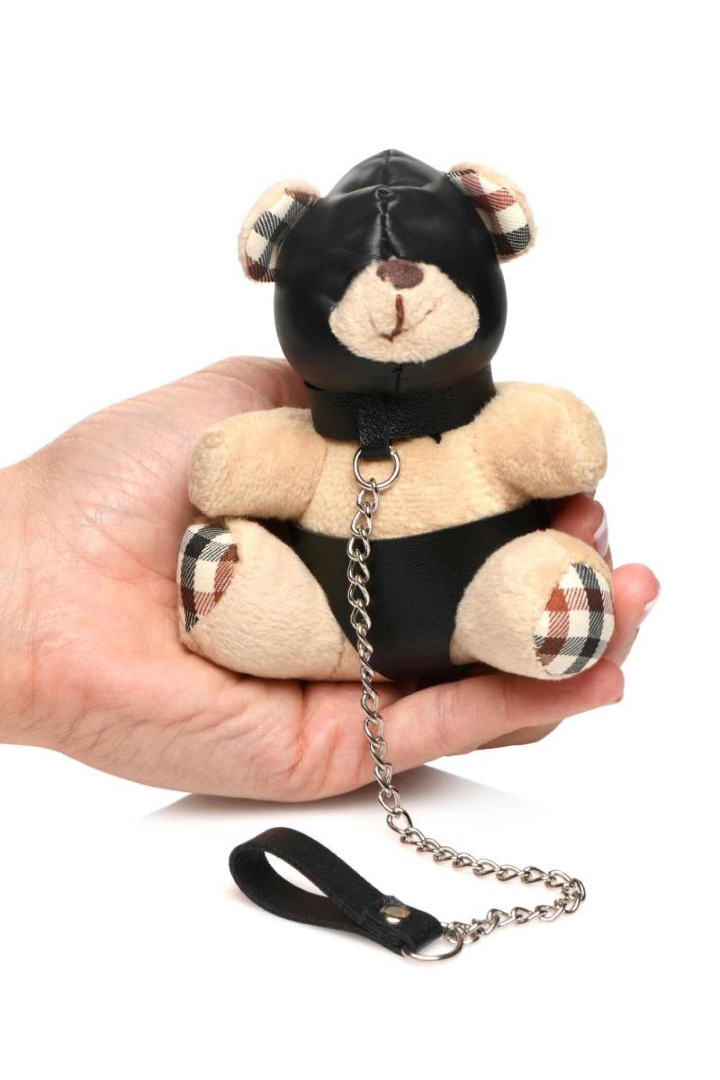 Looking for a gift for someone special or for yourself? This beautiful bondage teddy bear fits in the palm of your hand. It's the perfect keychain that will make your key set unique and show off your kinky side!